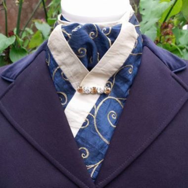 EDDPT03. Light Gold & Embroidered Navy Taffeta Ready Tied Stock